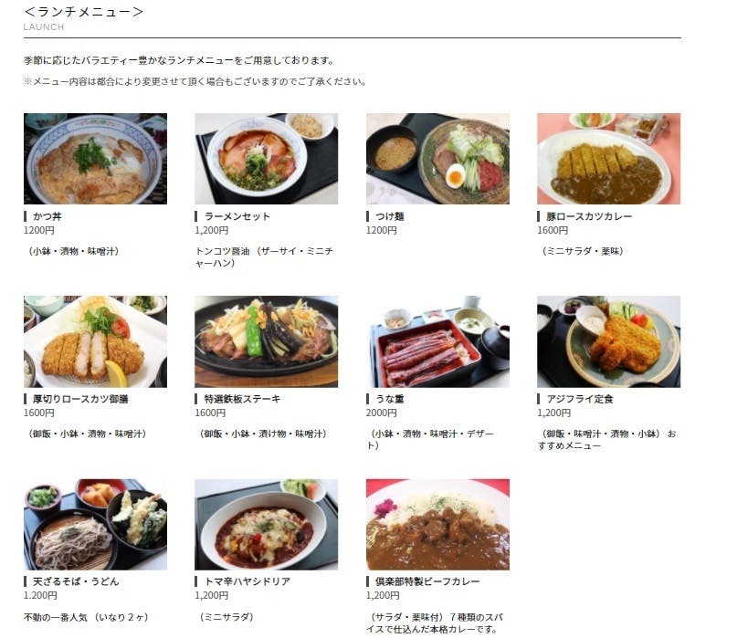 ■プレーの楽しみ「昼食の一例」 ※ 食事代は含まれておりません。