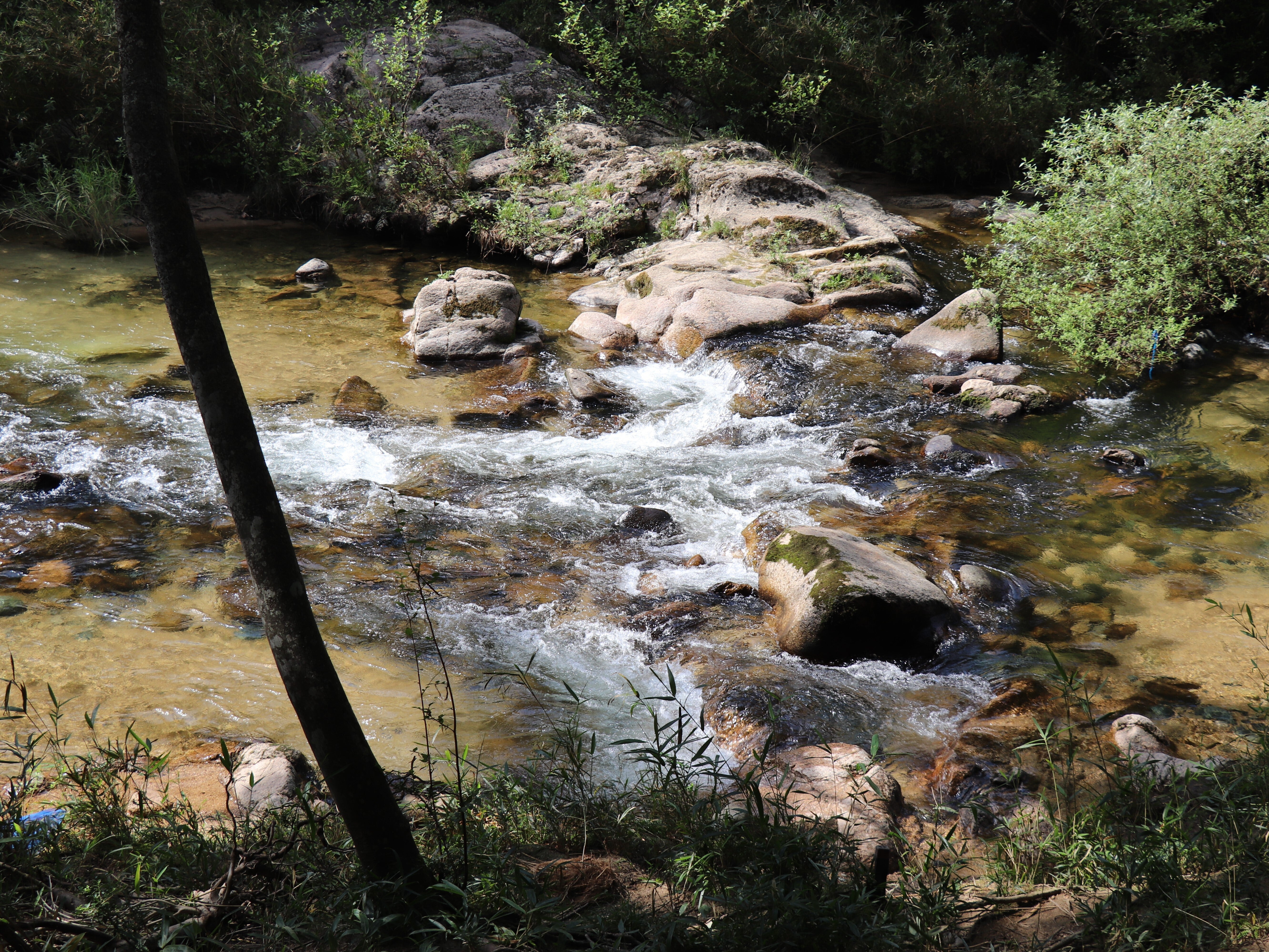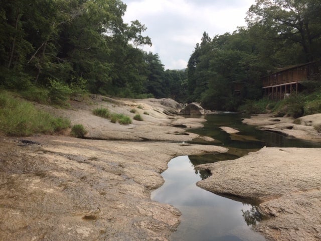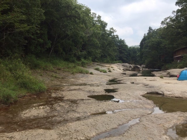 長い間に川の複雑な侵食を受けた川底に大小の穴ができています。