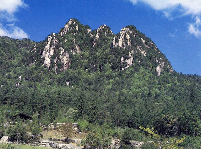 標高702mの三倉岳は朝日岳、中岳、夕陽岳と三つの峰を持っているため「三本槍」とも呼ばれ、ロッククライミングの訓練もよく行われています。