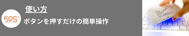 A. 紫外線には3つの種類があります。UVA・UVB・UVCです。 ネイル硬化用のライトはUVAを利用してジェルを硬化させます。 一方、59SX1のUVCは目や皮膚に直接・間接触れると炎症等の原因になることが あるため、絶対にネイル硬化用としては使わないでください。