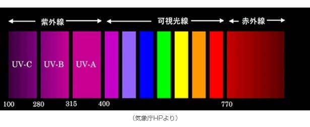 紫外線は波長の長さでUVA、UVB、UVCの3種類に分類されます。