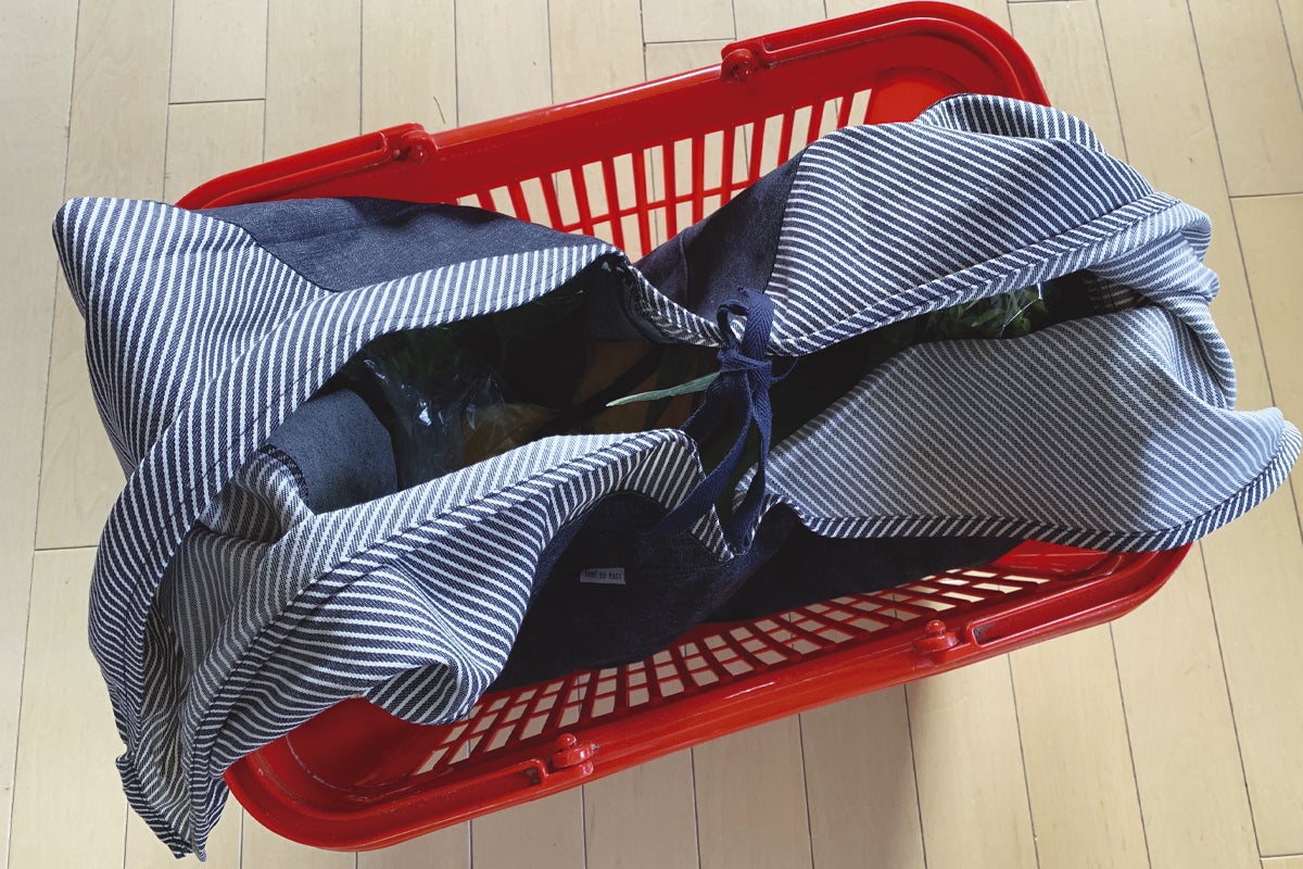 レジかご対応サイズの大判ショッピングバッグ=エコバッグを作成しました。
