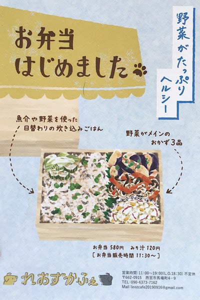 れおずかふぇでご用意しているランチとお弁当には、日替わりの炊き込みご飯を全て手作りで毎日仕込んでいます。コーヒーは市内の焙煎所から仕入れたコーヒー豆で1杯ずつ挽いてドリップしています。