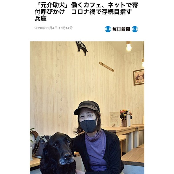 2020/11/06 23:42先日、毎日新聞の取材を受け、11/5の毎日新聞の朝刊にれおずかふぇが掲載されました。毎日新聞さんは以前より、兵庫介助犬協会を取材されていて、引退したオズを昨年12月にも掲載して下さいました。今回はれおずかふぇがクラウドファウンディングしていることを知られて、ご連絡いただき取材して下さいました。この記事のおかげでご支援が増えてきております。11/末まで頑張りたいと思います。https://news.livedoor.com/article/detail/19168354/ もっと見る