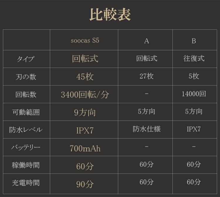 「SOOCAS S5」は45枚のダブルブレードにより従来品と比べて髭をとらえる力が50%UPしました!