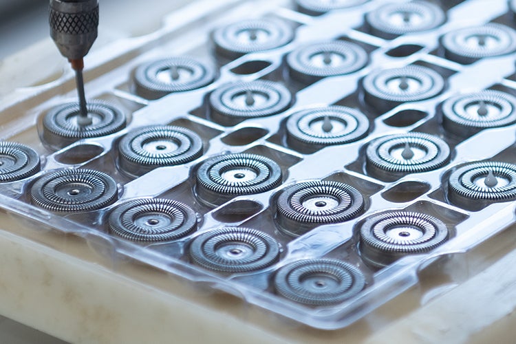 補助刃がひげを持ち上げ、メインの刃が素早くカットします。これにより最大0.08 mmの精度での剃りを実現。時間も短縮され、お肌への負担も軽減されました。