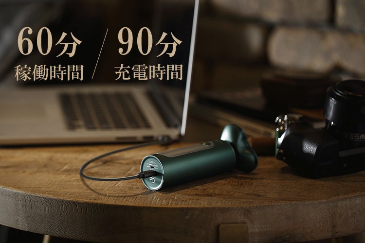 しかも専用ACアダプタではなくUSB Type-Cの充電方式を採用しているので、モバイルバッテリー・ノートPCからの給電やスマホとケーブルを共有することも可能です。洗面所に余計なケーブルが増えるわずらわしさもなく、わずか90分でフル充電になり、短期出張であればケーブルを持っていく必要すらありません。