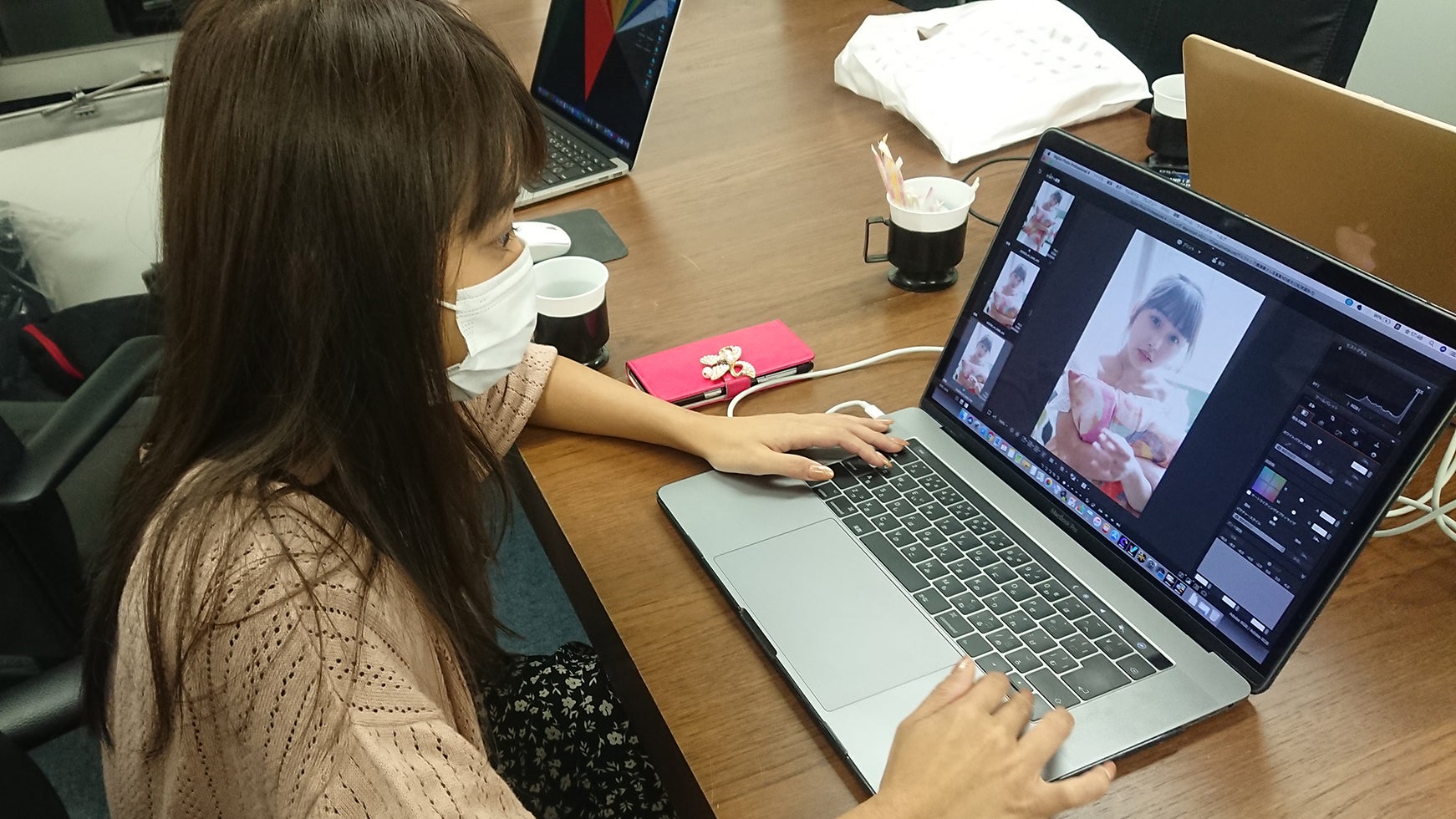 普段、恥ずかしがってあまり人前では見せようとしない??真剣な表情で、1枚1枚丁寧に撮影データをチェックしていました。