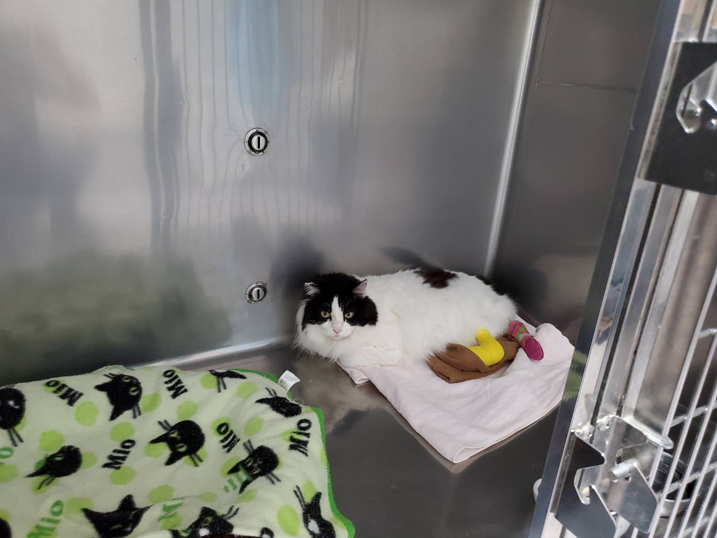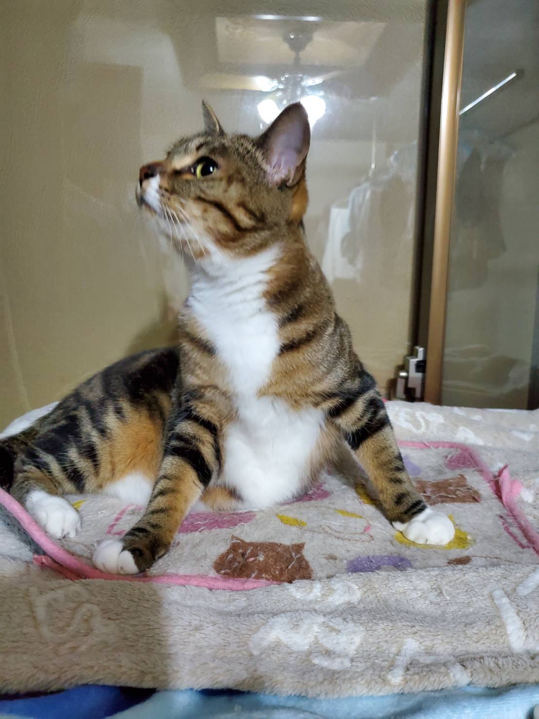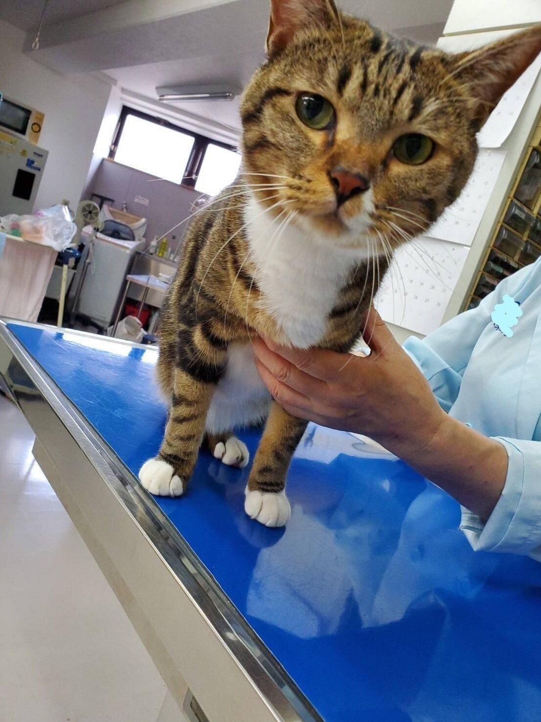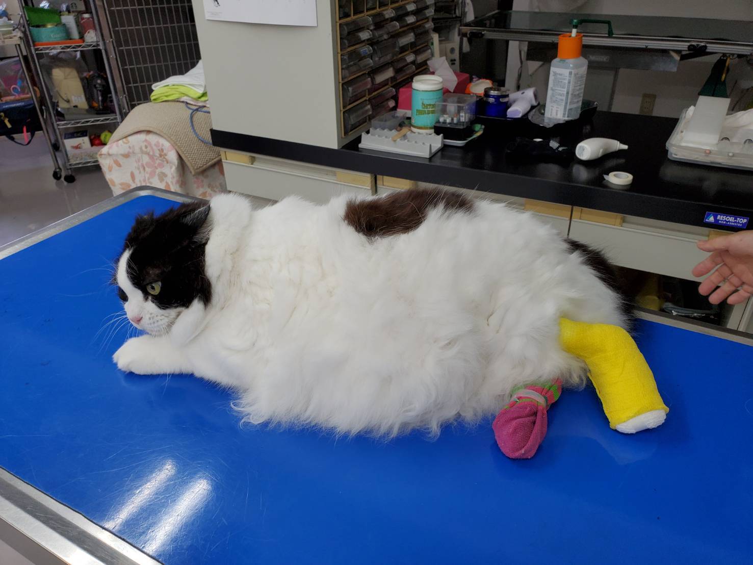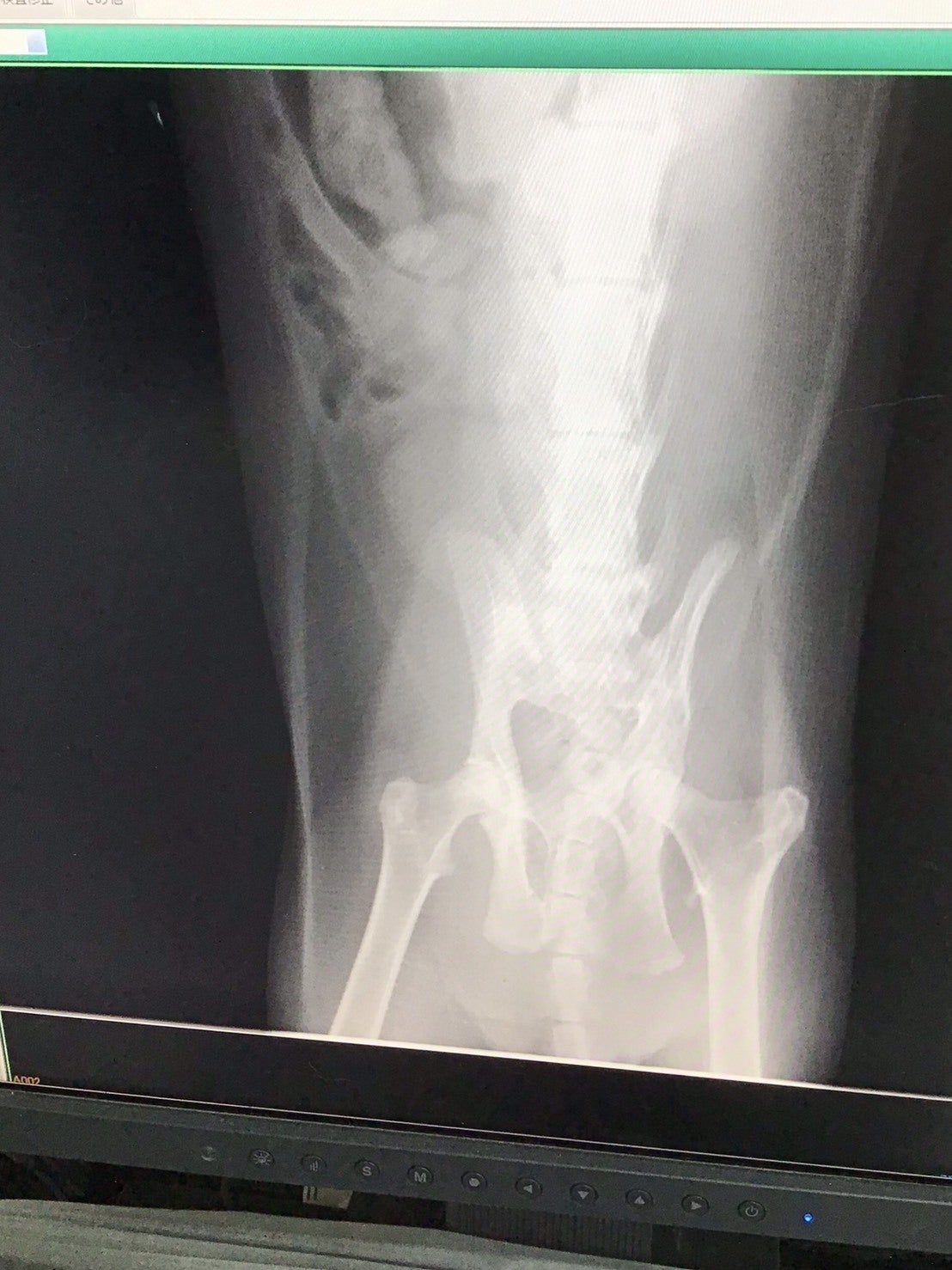 具合が悪そうで、最初原因不明でしたが、脚の動きが悪く便の出も悪かったので、レントゲンを撮りました。診断は骨盤骨折。外傷はなかったので、外からは分からなかったのですが、大変な怪我をしていたのです。事故でしょうか⁈ それとも 踏みつけられたりしたのでしょうか⁈