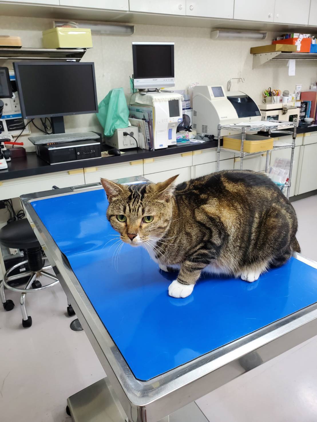 まるちゃんはそれでも一生懸命生きています。可愛いまるちゃんは丁寧に手当てしてもらい、病院のフロアーを歩き、みんなに可愛がってもらっています。