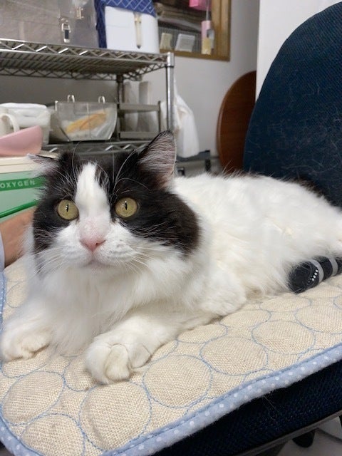 綺麗な長毛猫のまるちゃんを里親募集するはずが、保護後しばらくすると突然 後肢に激しい痛みと麻痺が起こりました。検査の結果、心臓に重篤な病気があることが分かりました。根治することのない病気、心筋症と診断されてしまいます。