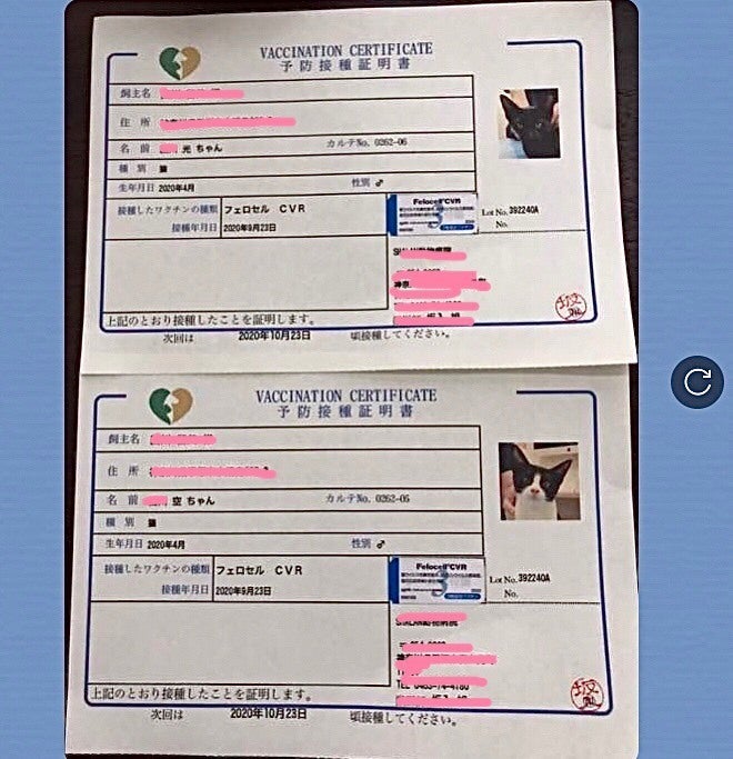 2匹はその後 無事1回目のワクチンを済ませました。