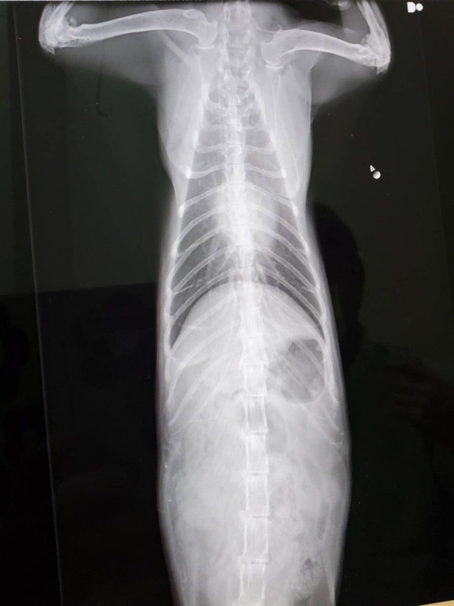 レントゲンで見ると少し肝臓の腫れがあります。