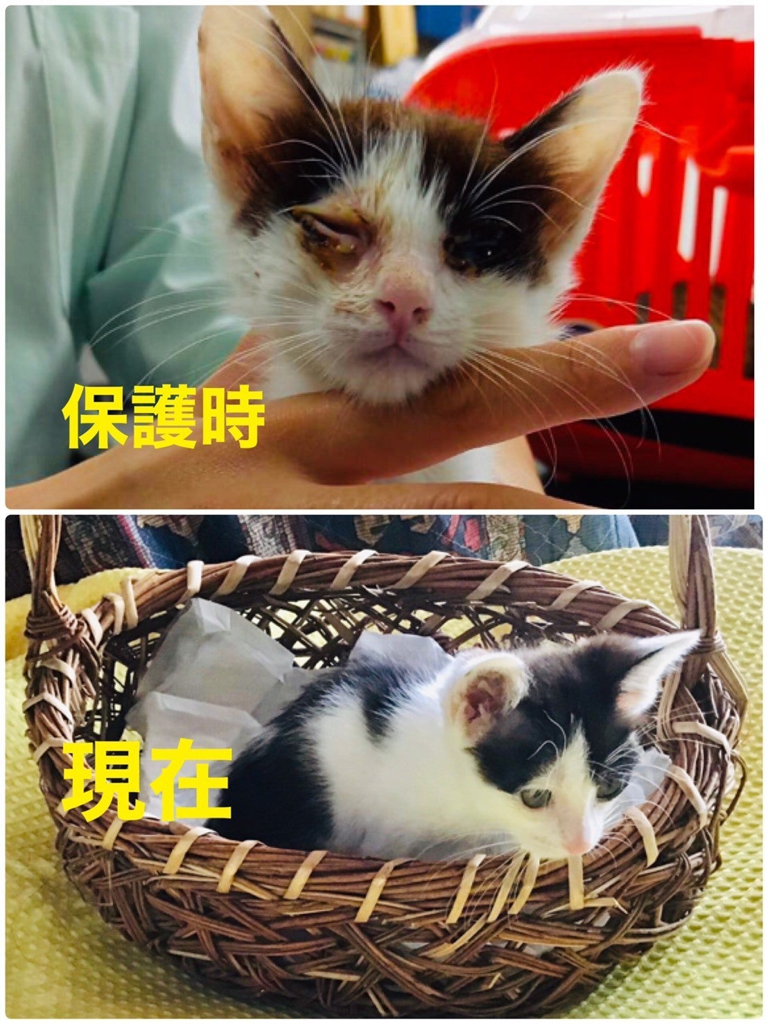目の治療、投薬・ワクチンなどして元気になったら里親さんを募集します。