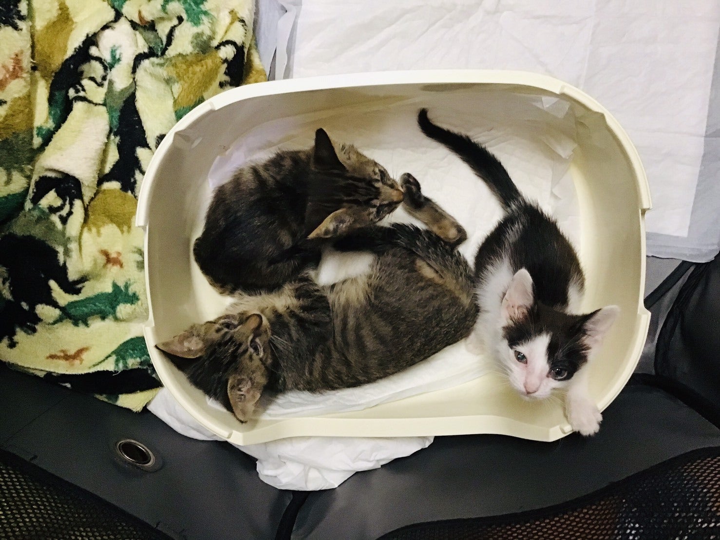 子猫たちは、連れ帰る車中が臭うほど汚れ
