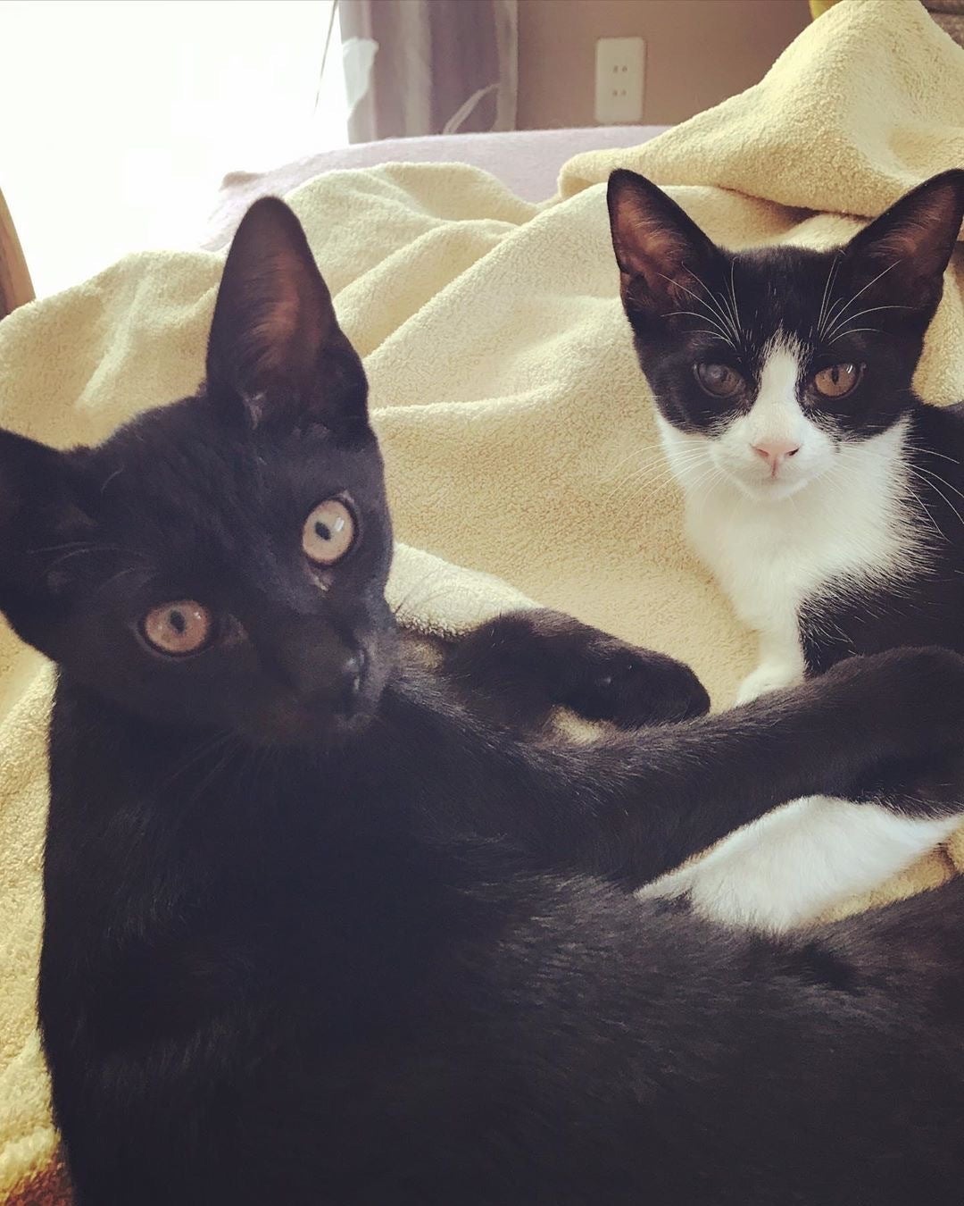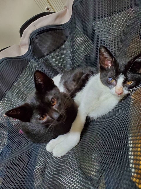 良い環境で暮らしてほしいとインスタグラムで預かりボランティアさんを募集したところ 2件のお申し込みがありました。これには私たちも びっくり!病気の子猫で大変かもしれないのに ありがたいことです。相談の結果、平塚の方にお願いすることにして 8月はじめに2匹をお届けしました。おうちには パグ犬のハナちゃんと 3匹の先輩保護猫がいます。預かりさんは、病気や障害のニャンズに詳しい頼れる方です。2匹は広々としたお宅で 快適に暮らし始めました。名前も 黒猫こう(光)ちゃん 黒白くう(空)ちゃんと つけていただきました。猫らいんは 食費医療費を提供して、月に一度は訪問させていただき 様子を見ることになりました。(写真は保護宅での2匹です)
