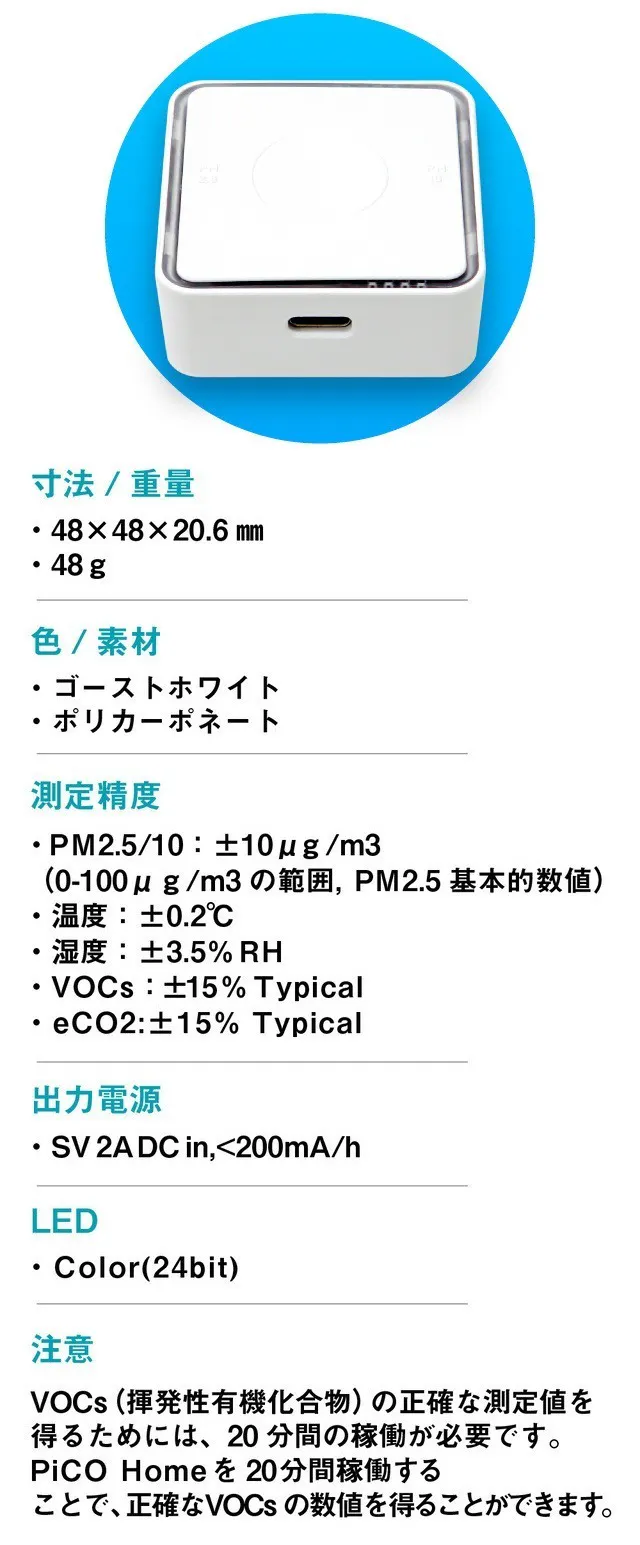 「PiCO Home」は、あなたが呼吸する空気中に何が含まれているかを知ることができる、エレガントでパーソナルなスマート空気品質モニターです。空気中の危険な微粒子をリアルタイムで測定します。