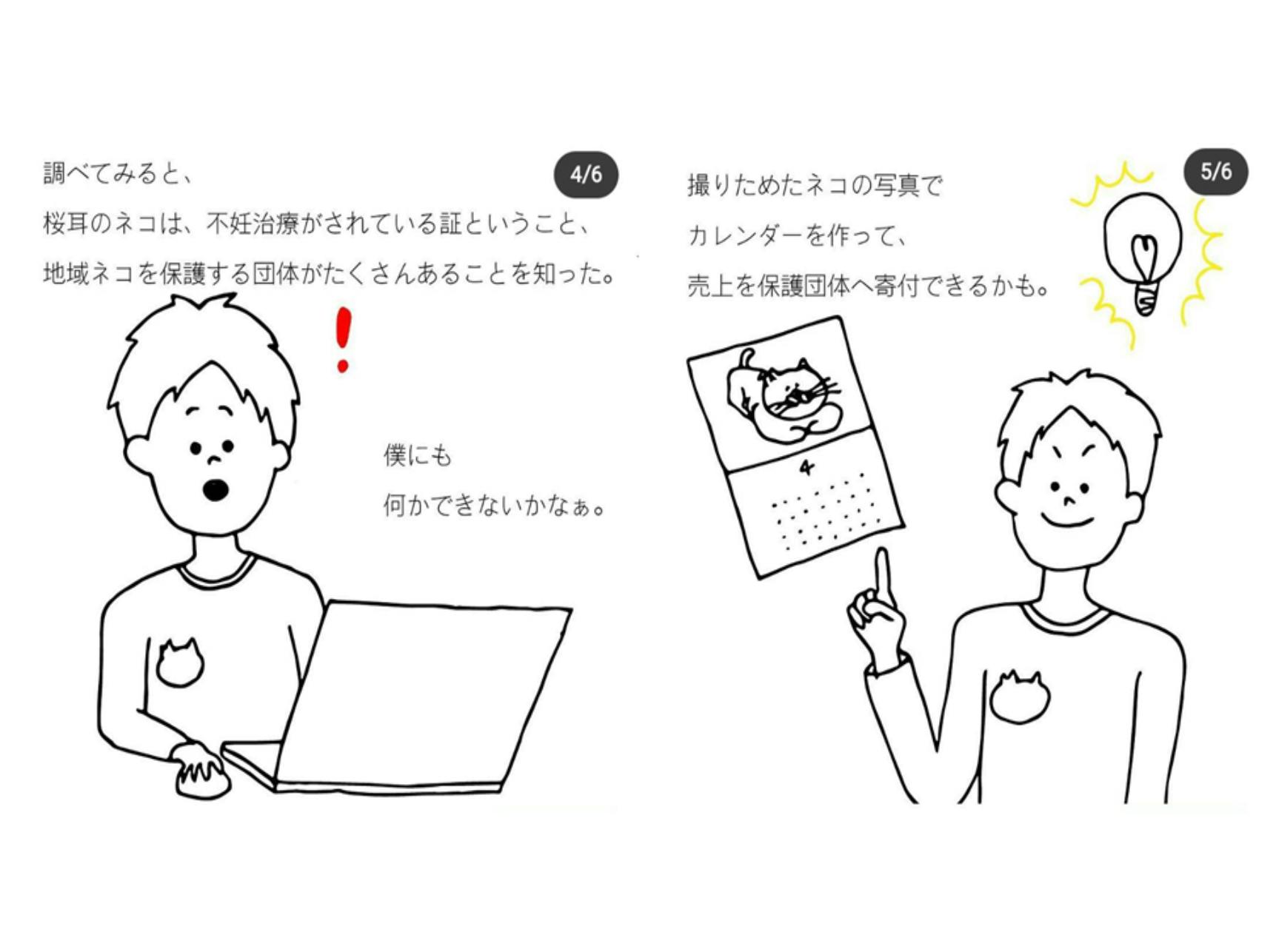そんな想いからねこの写真が入ったカレンダーを作り、保護団体に寄付する事を決意。