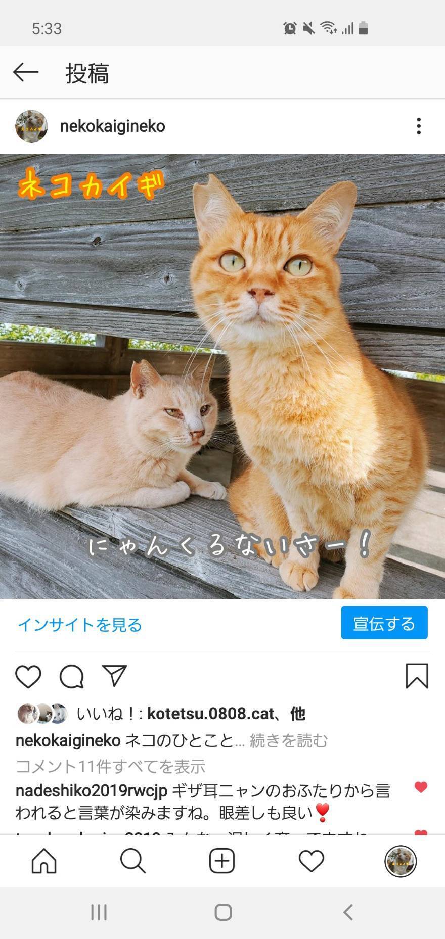 Instagramでは地域ねこの日常をメッセージをつけて毎日投稿。