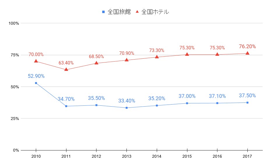 全国旅館・ホテル 平均稼働率