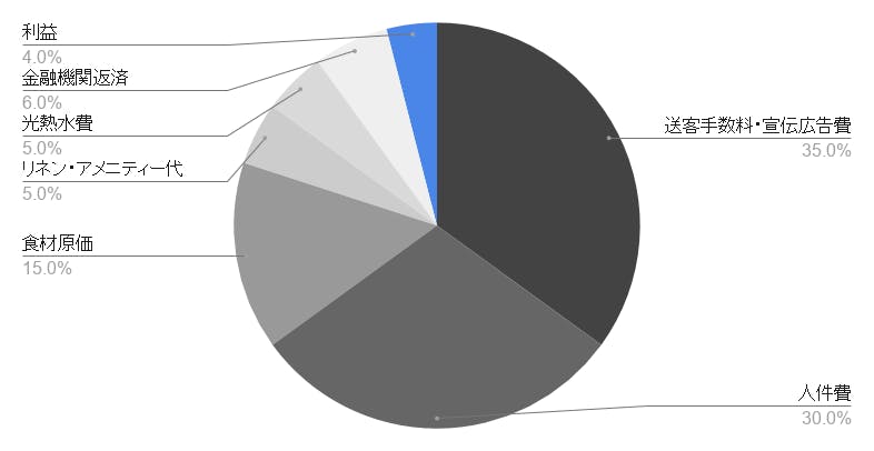 基本的な旅行サイトでは、送客手数料が10%~25.5%、そこに追加でポイントや宣伝広告費を支払っております。