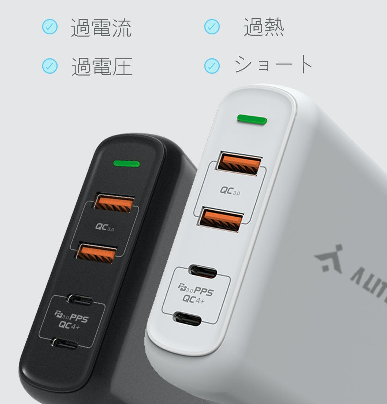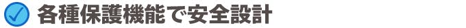 安全面では過電流、過電圧、過熱、ショートからデバイス保護機能を搭載するため、あなたの大事な機器が壊れたり、負担をかけたりする心配はいりません。