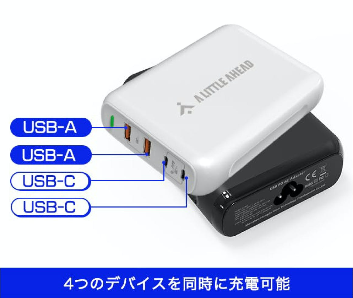・複数同時に充電できる4ポート搭載(Type-A×2、Type-C×2)