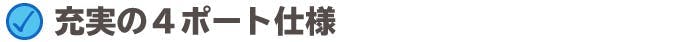 ノートPCや各種ガジェットなどをまとめて充電できる4ポート仕様のため、おそらく充電に困るシーンは少ないでしょう。
