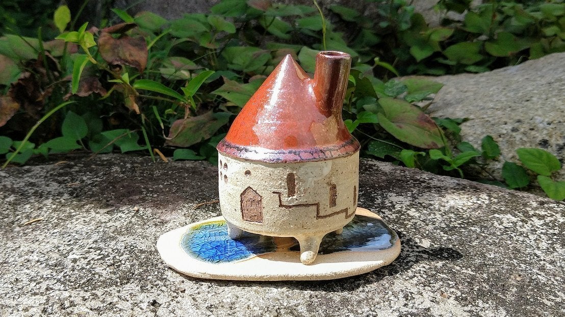 あるく家の一輪挿しに台をおつけします。サイズ・雰囲気は多少異なる場合があります。