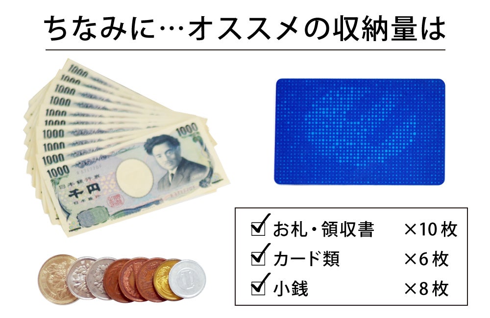 ※推奨値:おおよそ紙幣10枚・カード6枚・コイン8枚