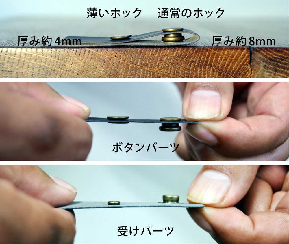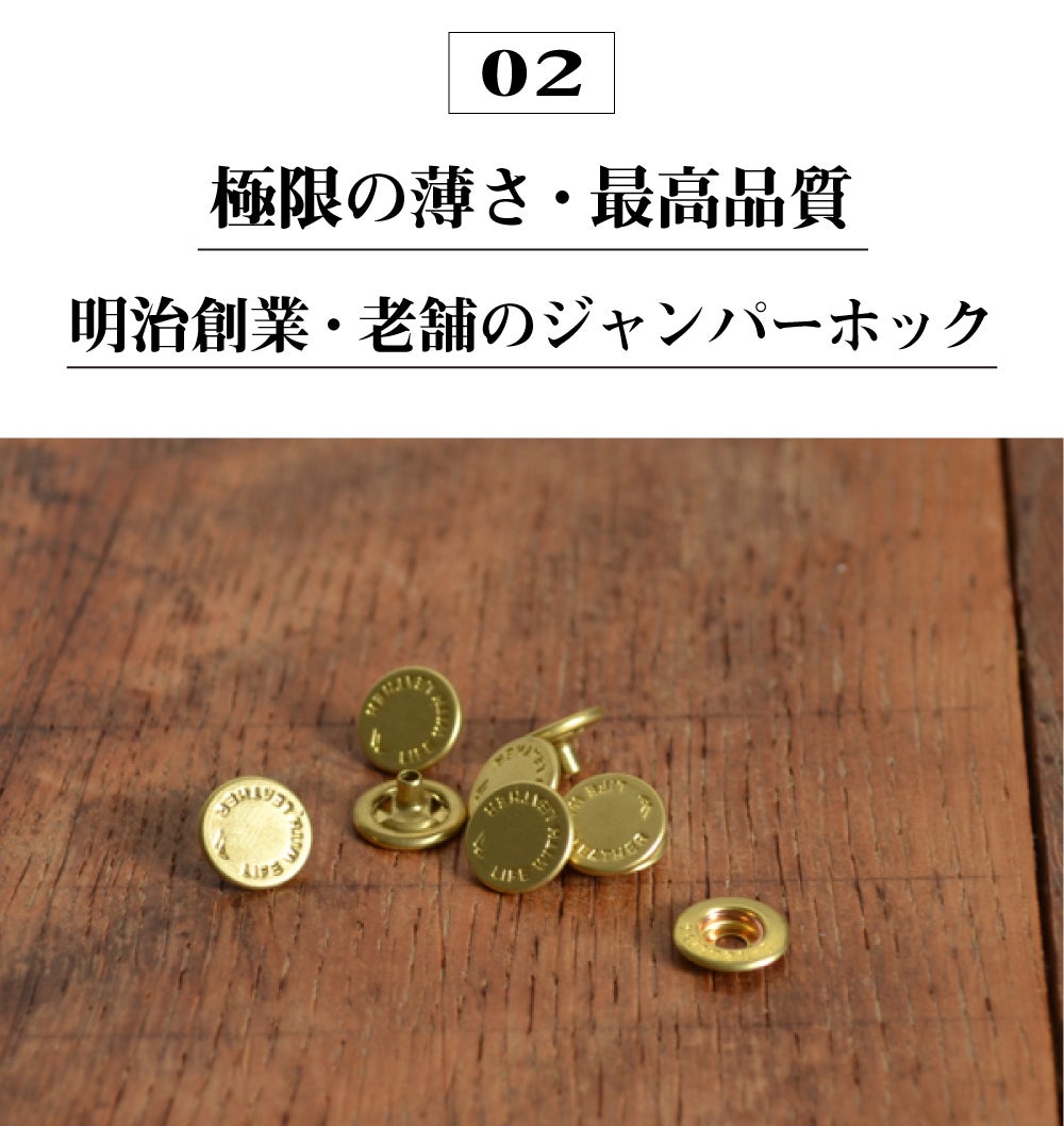 ※真鍮ホックはメッキ加工していない無垢となりますので、革と同様、時間とともに味わい深くなります。