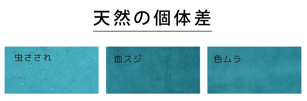 合皮やナイロンなど人の手でつくられた均一的な質感の素材と違い、命ある動物の革には、その動物が生きてきたことを物語る傷やシワ、毛穴や虫さされなど、さまざまな個体差が見られます。