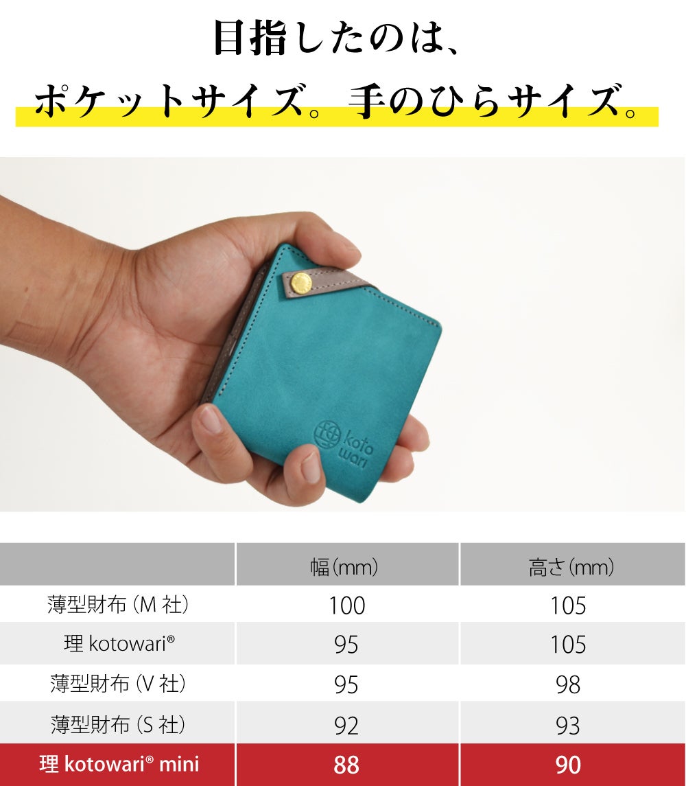 【kotowari® mini】を持つ方に、このシンプルな革財布を末永くご愛用いただけますことを切に願います。