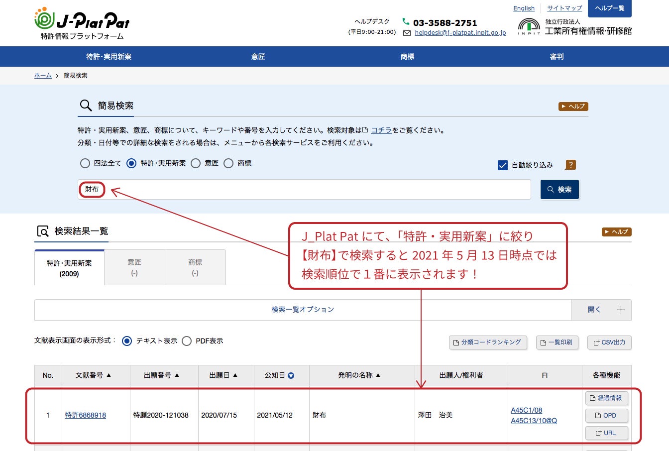本日は、かねてより出願していた特許が昨日正式に取得でき、特許庁の特許検索サイト「J-Plat Pat」にて情報が開示されましたので、ご報告いたします。