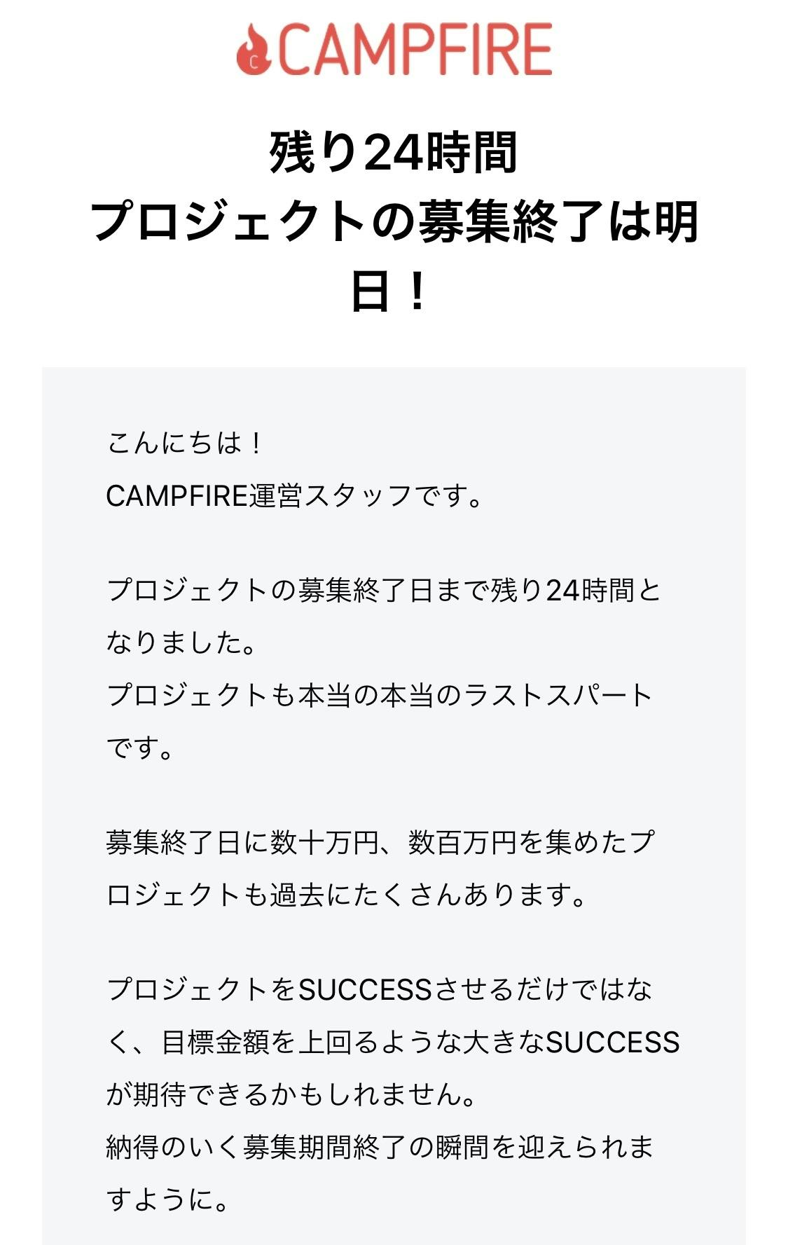 タイトルにもありますように、プロジェクト残り22時間になりました!!