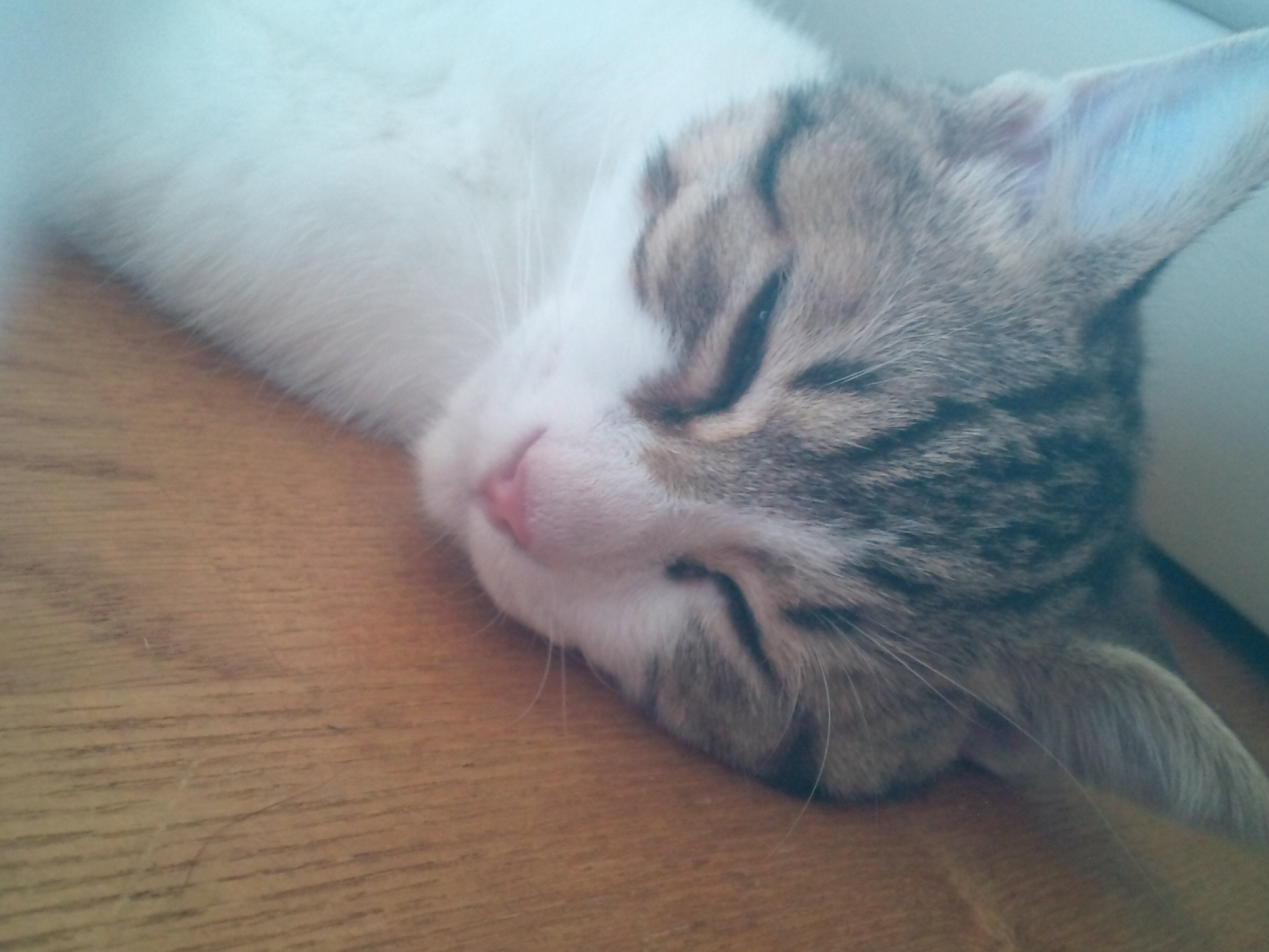 数年前まだヘソの緒が付いている状態で捨てられていたこの子(マンジ)を保護し、現在、もう一匹の捨て猫(わらび)と合わせて2匹を保護し生活しています。