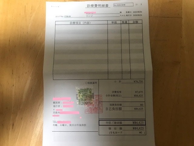 手術費¥84,425+診察費¥32,367+抗がん剤費用¥500,000