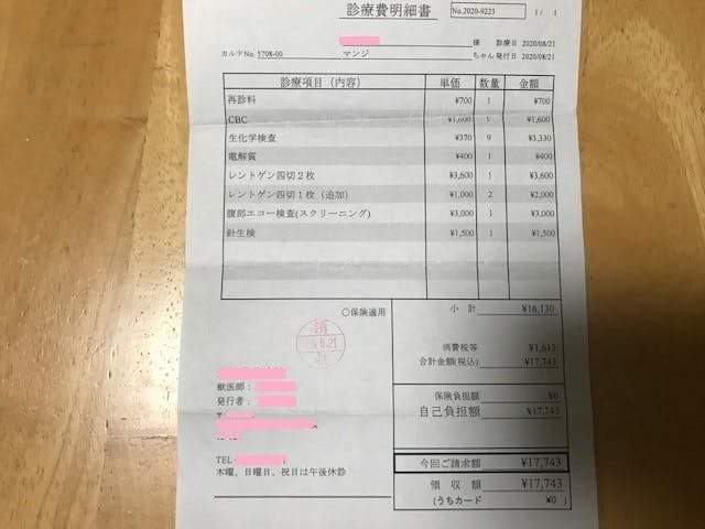 8月21日 体の腫瘍が増えた為、再度、動物病院へ(レントゲン、再度針細胞診、エコーなど)