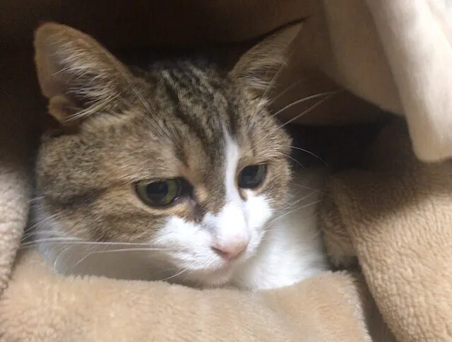 2020/10/30 17:44本日はここ数日の食欲の減少に加え、昨晩に鼻翼呼吸(小鼻が動く呼吸)と腹式呼吸が見られたので朝一番に病院へと行きました。検査の結果、少量の胸水(肺に水が溜まる状態)が確認されたので水を取り除いてもらいました。血液検査では異常は見られず、次に原因として考えられるのは心臓の異常やリンパ腫ですが、検査の結果心臓には異常は見られなかったので、リンパ腫が原因だと考えられるとの事でした。そのことから本日は抗がん剤(副作用や期間を空けず使用できるもの)を使用し、明日病院で胸の様子の確認と再度抗がん剤の投薬となります。今までの抗がん剤により皮膚表面の腫瘍はありませんが、今回呼吸器にリンパ腫の症状が出たことから今後は抗がん剤のプロトコール(種類やプラン)の変更も視野に入れるとの事です。今までは皮膚上に腫瘍が見られないことや大人しく寝ていることも多いものの、変わった様子が見られないことにに少し安堵していましたが、長引く食欲不振や体の内部でのリンパ腫の確認など体調の急な変化となりました。帰宅後の現在は落ち着いている様子ですが、今晩の状態をよく見て明日、再度病院に行く予定です。 もっと見る