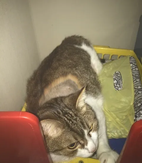 普段はリビングのクッションがお気に入りなのですが、クローゼットで大人しくしています。