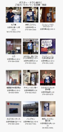 ホームページの冒頭は「夜明けじゃ!」に関する宣伝が色々と載っているのですが、後半部分はポスター掲示にご協力いただいているお店を紹介させてもらっています。