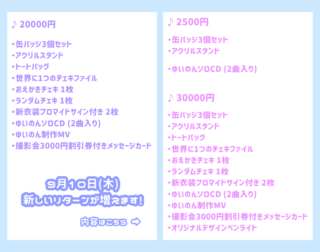 9月10日に新しいリターンを追加しました