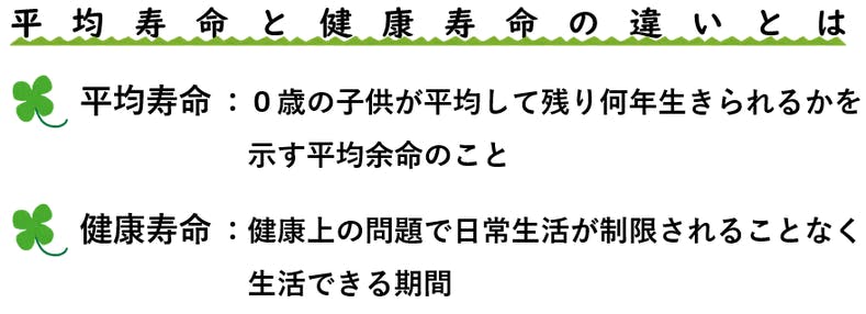 健康寿命とは「その平均寿命の中で健康に生きていられている期間」