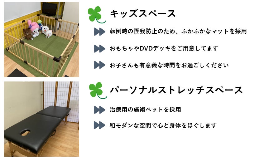 店内でお子様が退屈せずにお待ちいただけるスペースやDVDプレーヤーなどを設置し、お父さんお母さんが運動に励むことの出来る環境を作りだすことが可能になります。