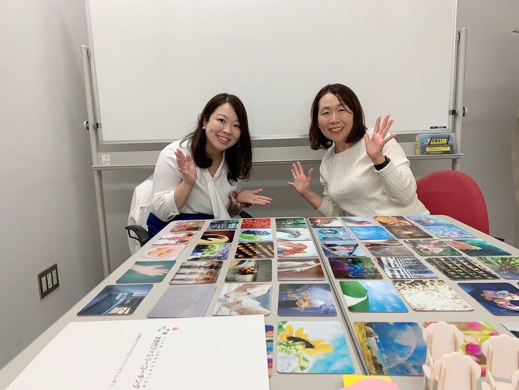 そして、ワークは、写真では全体に見えているカード=ビジョンカードやおもちゃの椅子なども使いますので、ゲーム感覚で楽しみながらご受講いただけます。