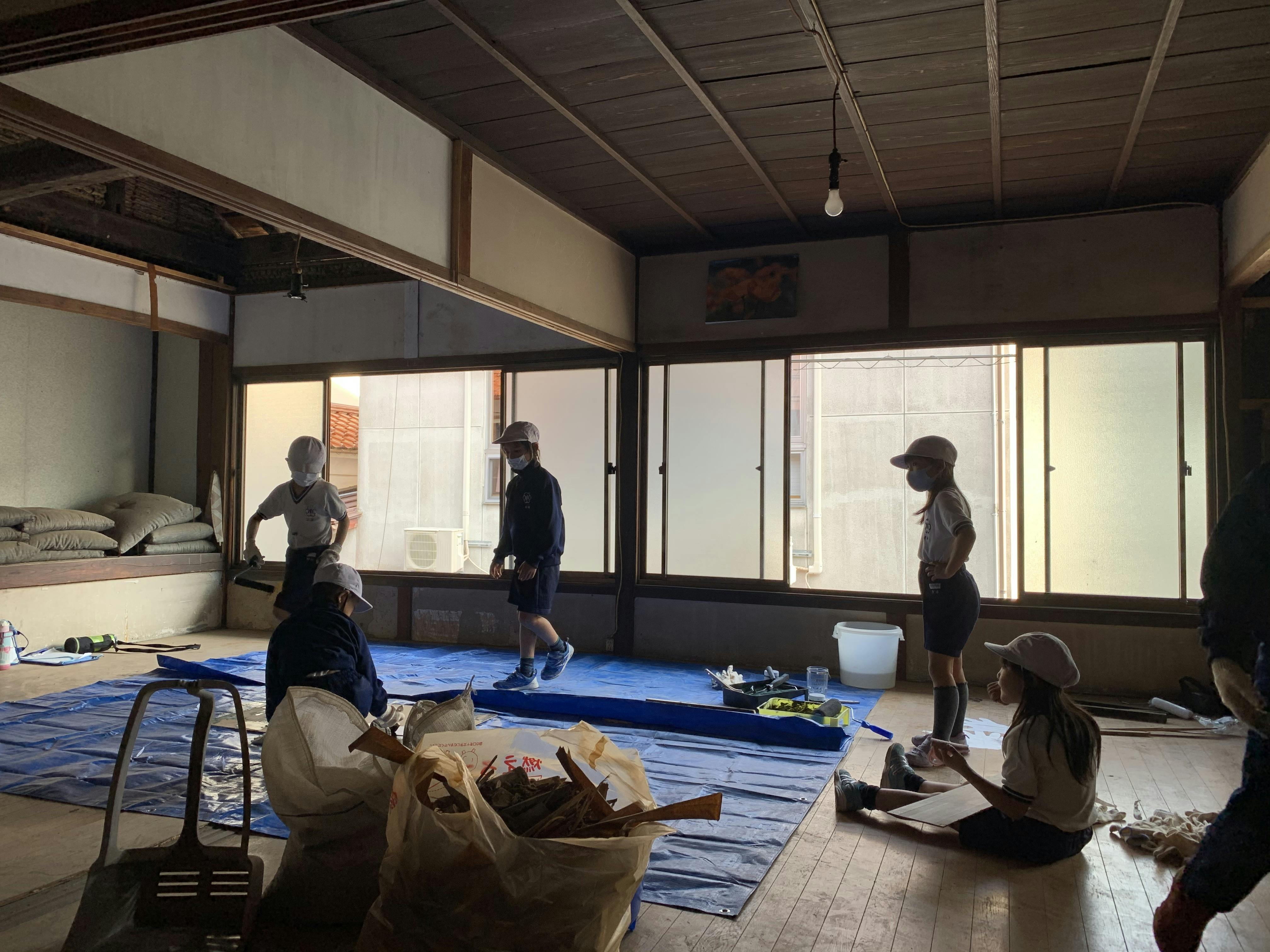一夜明けた本日は、午前中に津和野小学校の2年生が、改修の現場に来てくれました。