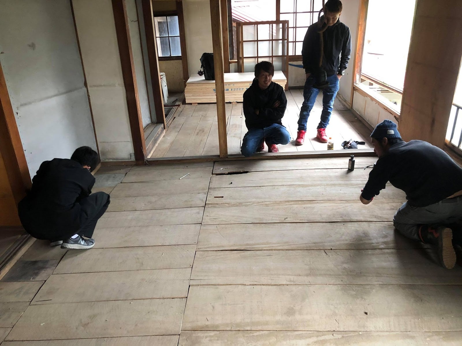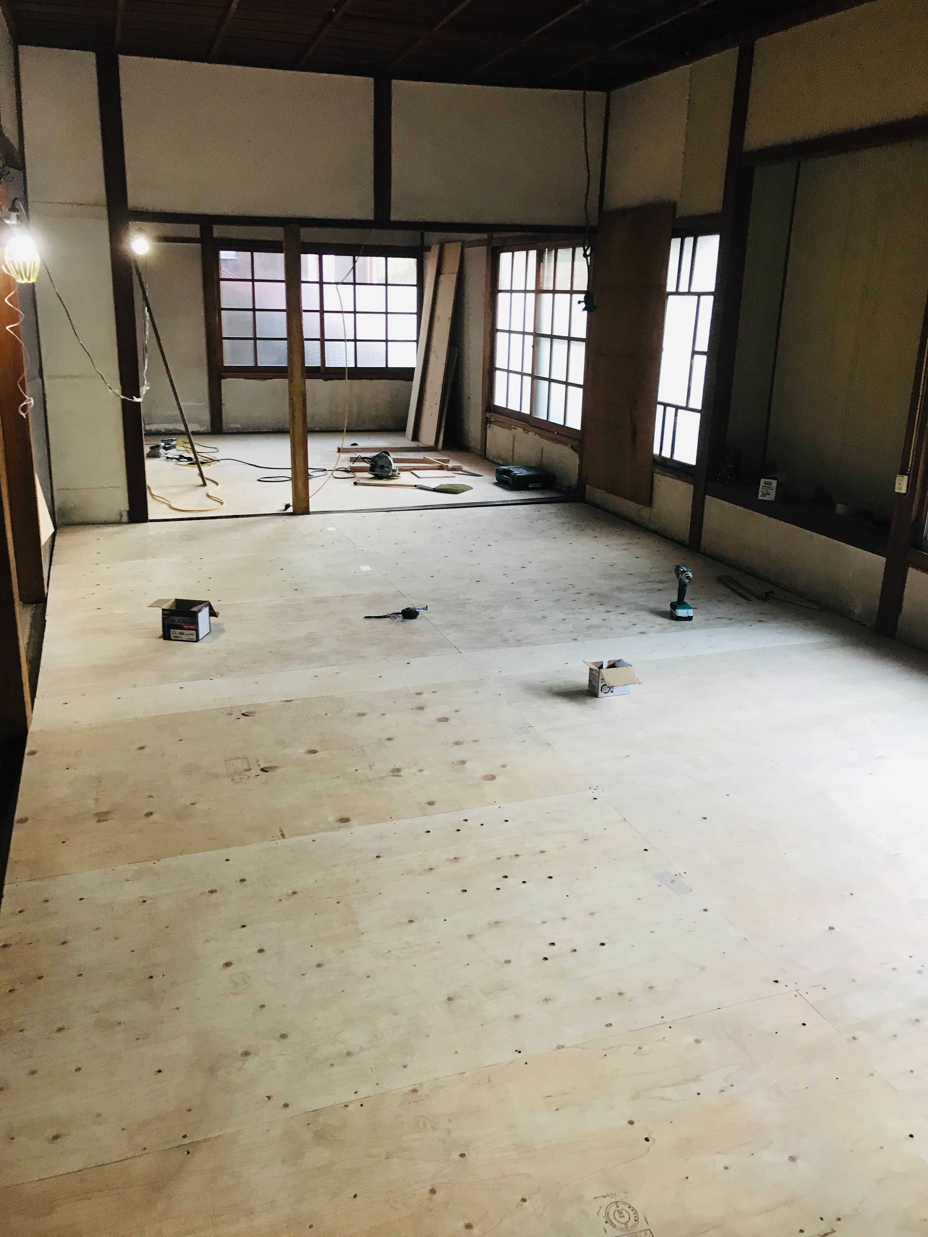 解体工事がひと段落したところで、床の下地貼りに入っていきました。