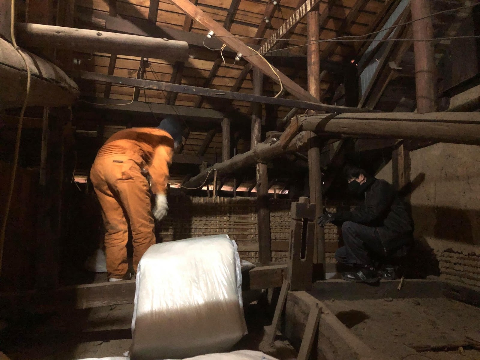 最近は津和野でも雪がチラホラ降ってきて、DIY作業も寒さとの戦いになってきました。営業開始後も冬に暖房の熱が逃げないよう、屋根裏に断熱材を敷き詰める作業を行いました。