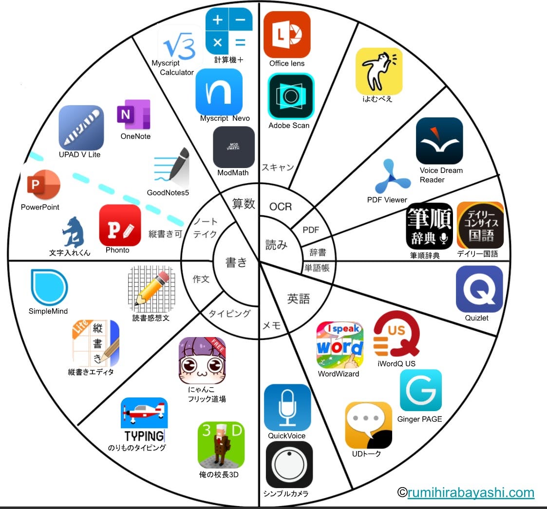「日本版 ディスレクシアホイール」(読み書き支援に活用できるアプリの一覧表)