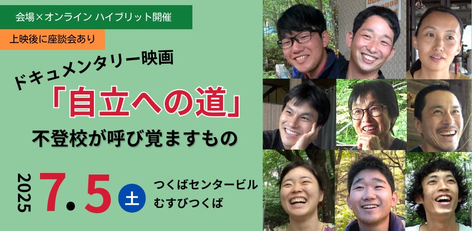 2025/06/23 19:446月とは思えないほど暑い日が続いていますが、みなさんいかがお過ごしですか。新年度を迎え、むすびつくばライズ学園の子どもたちは、毎日元気に活動しています。子どもたちだけではなく、むすびつくばライズ学園の保護者委員さんも色々な企画をしています。その一つとして、7月に 映画「自立への道」の上映会が実施されます。現地開催の他にオンライン配信もあり、1週間の配信期間中、お好きなときに何度でもご覧いただけます。そして、なんと、映画上映の後、監督登壇座談会も開かれます。遠方の方はオンラインで、この機会に教室を見てみたいという方は現地参加で、ぜひご覧ください!ーーーーーーー7月5日(土)@ むすびつくばライズ学園 教室「自立への道~ 不登校が呼び覚ますもの~」元不登校児童8人の現在。猟師、会社員、農家、役者、教師など職業は様々。不登校を後悔するもの無し。彼らはいかに生きてきたのか?母親一人を含む9人のインタビュードキュメンタリー映画。(HPより抜粋)●予告編動画 ーーーーーーー詳細・お申込みは、下記 URL からとなります。●申込先 https://peatix.com/event/4409513/viewーーーーーーー もっと見る